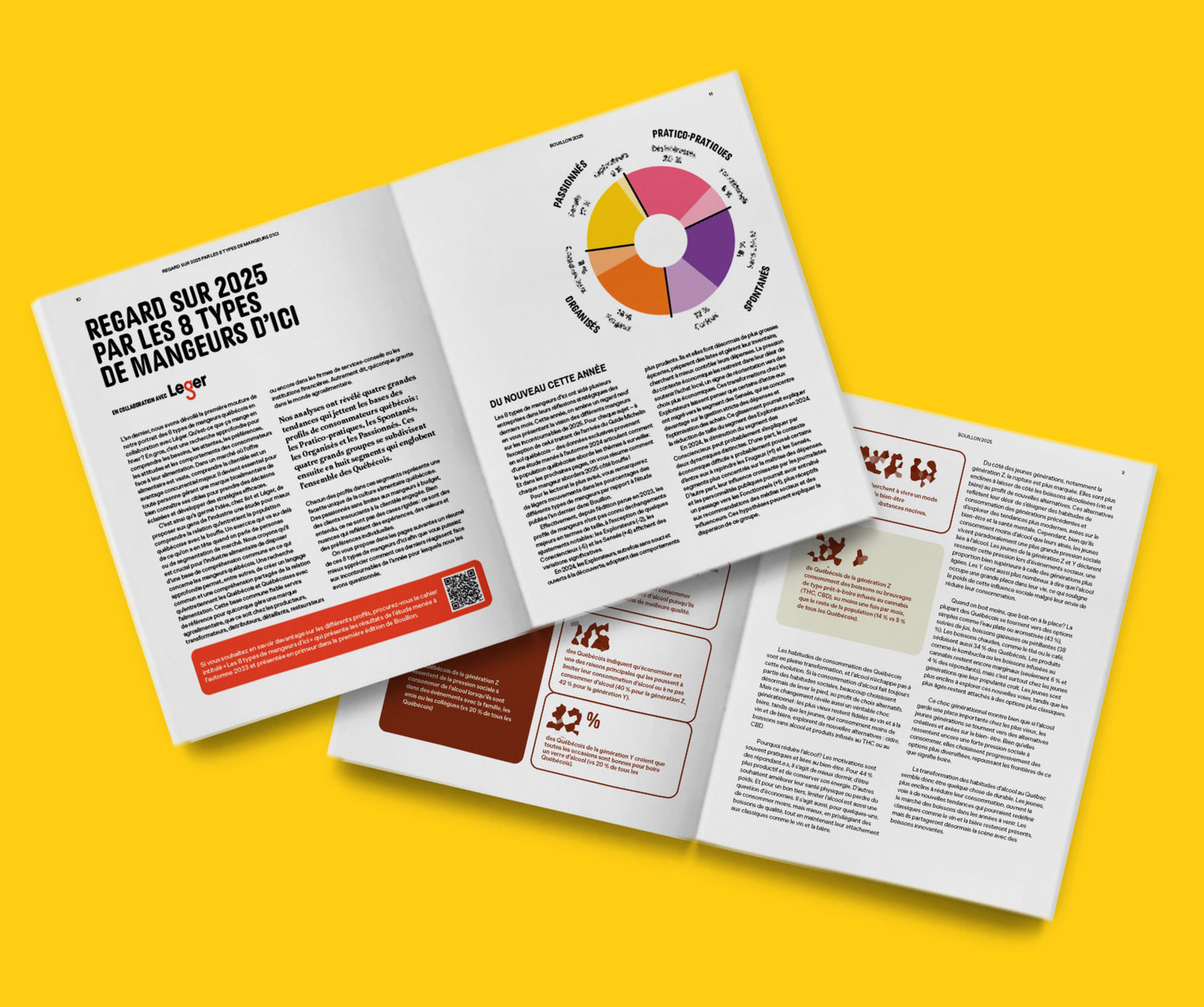 Quel regard portent les 8 types de mangeurs québécois sur les grands thèmes qui marqueront 2025? C’est ce que cette deuxième mouture de l’étude sur la relation que les Québécois entretiennent avec la bouffe vous fera découvrir. Des nouvelles données fraîches et exclusives pour approfondir encore davantage votre connaissance des mangeurs d’ici.